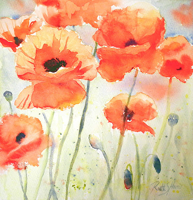 Starting with a simple drawing to guide me, I added some tiny spots of masking to reserve a few highlights and, once that was dry, wet the paper before dropping in colour. Remember the pencil lines were only there to guide me, the wet paper allowed the pigment to spread and soften edges.
